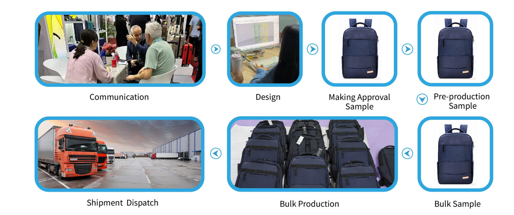 A: 저희는 소재 선택, 색상 조합, 지퍼, 손잡이, 안감, 주머니, 버클, 브랜드 로고 등 시장 요구에 맞는 다양한 맞춤 제작 옵션을 제공합니다.