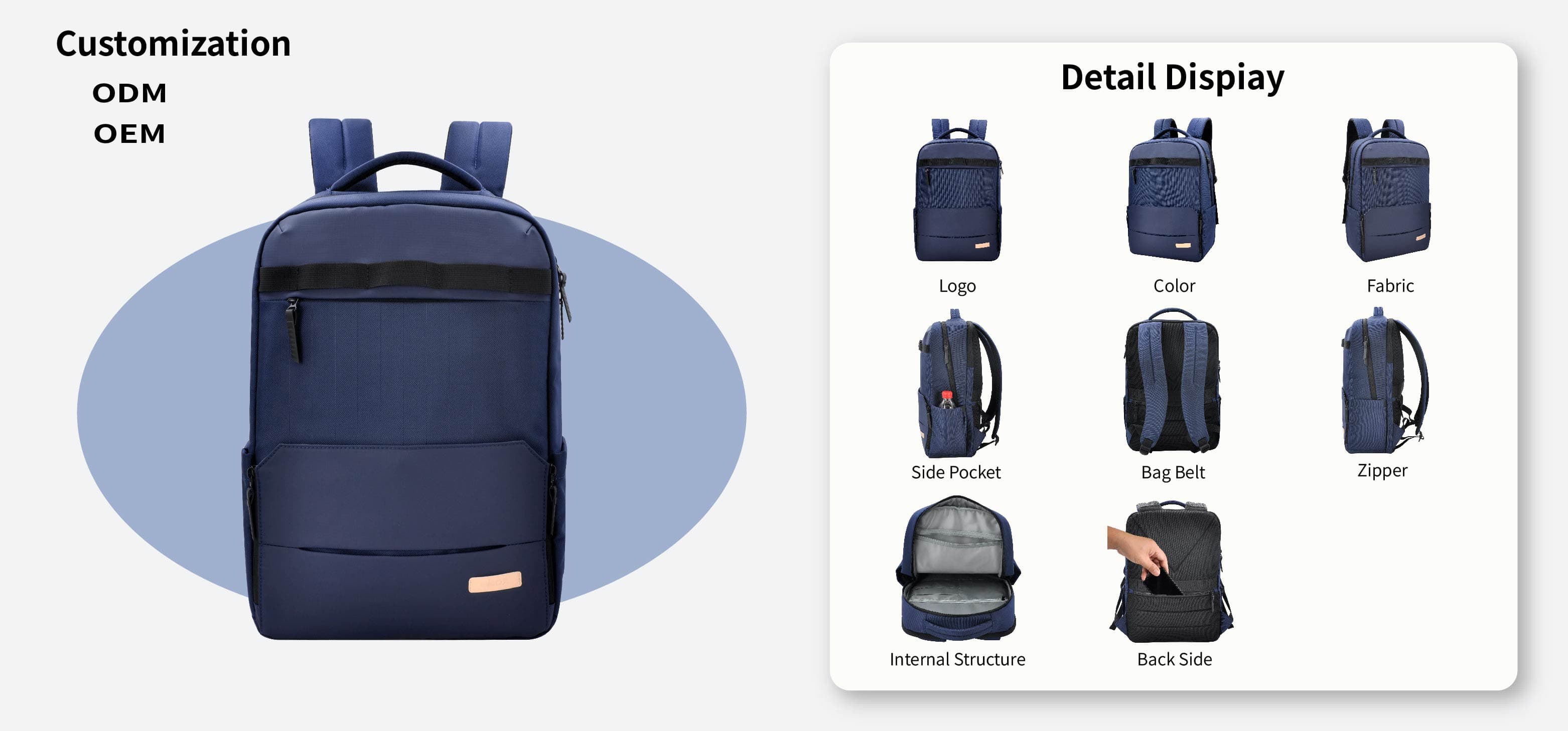 A: 네, 로고, 패턴, 색상, 크기, 구조 등 모든 면에서 맞춤 제작이 가능하여 브랜드 이미지를 완벽하게 표현하는 특별한 백팩을 만들 수 있습니다.