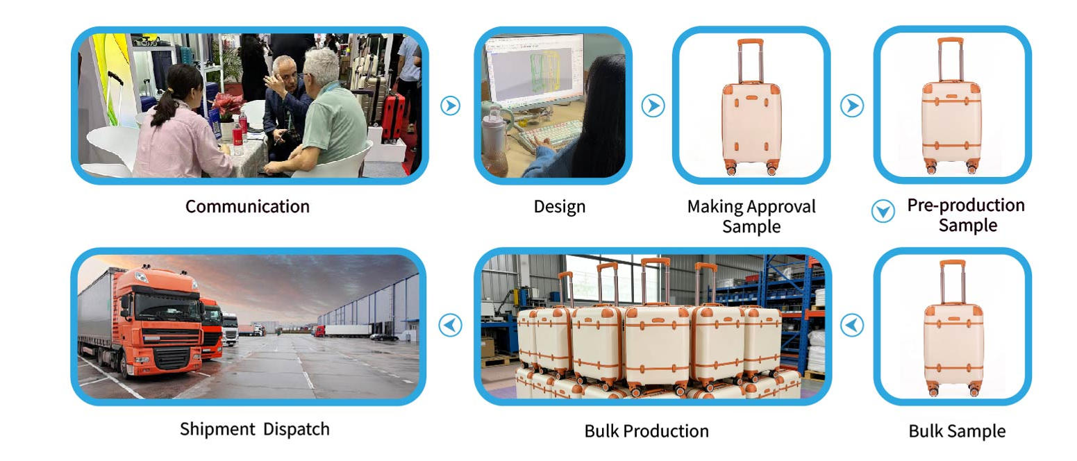 A: 저희는 기본 맞춤형 여행 가방의 최소 주문 수량(MOQ)을 다양한 사업 규모에 맞춰 유연하게 조정하고 있습니다. 독점 금형을 사용하는 완전 맞춤형 디자인의 경우, 생산 효율성과 비용 효율성을 보장하기 위해 적절한 MOQ를 책정하고 있습니다.